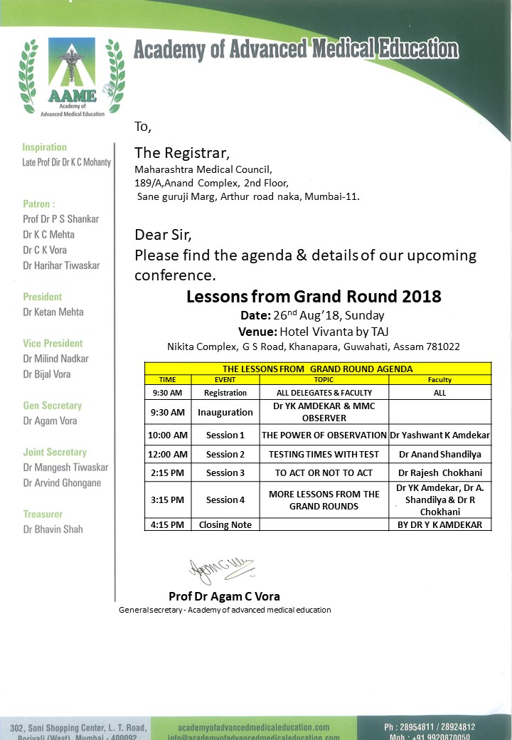 | The Lessons from Grand Round 2018 | August 28, 2018 / Guwahati | Brochure |