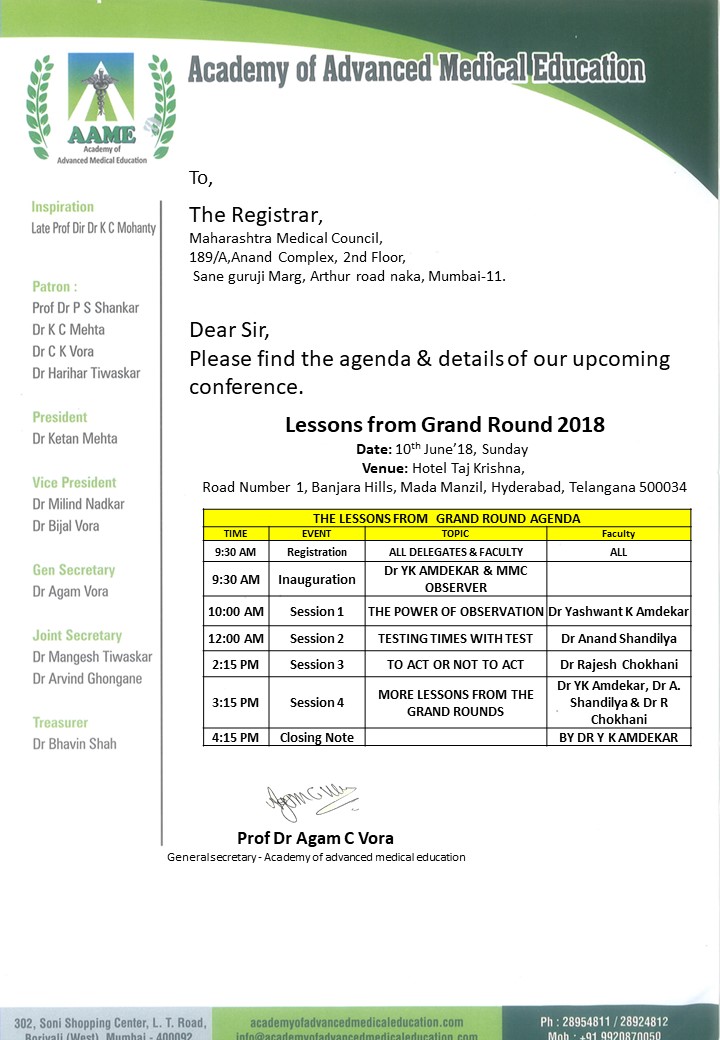 | GP 17 – educational programme for family physicians of Mumbai is organized by AAME at Ramada Convention center between 9 am till 4 pm. The event will be MMC accredited. | December 3, 2017 / Mumbai | - |