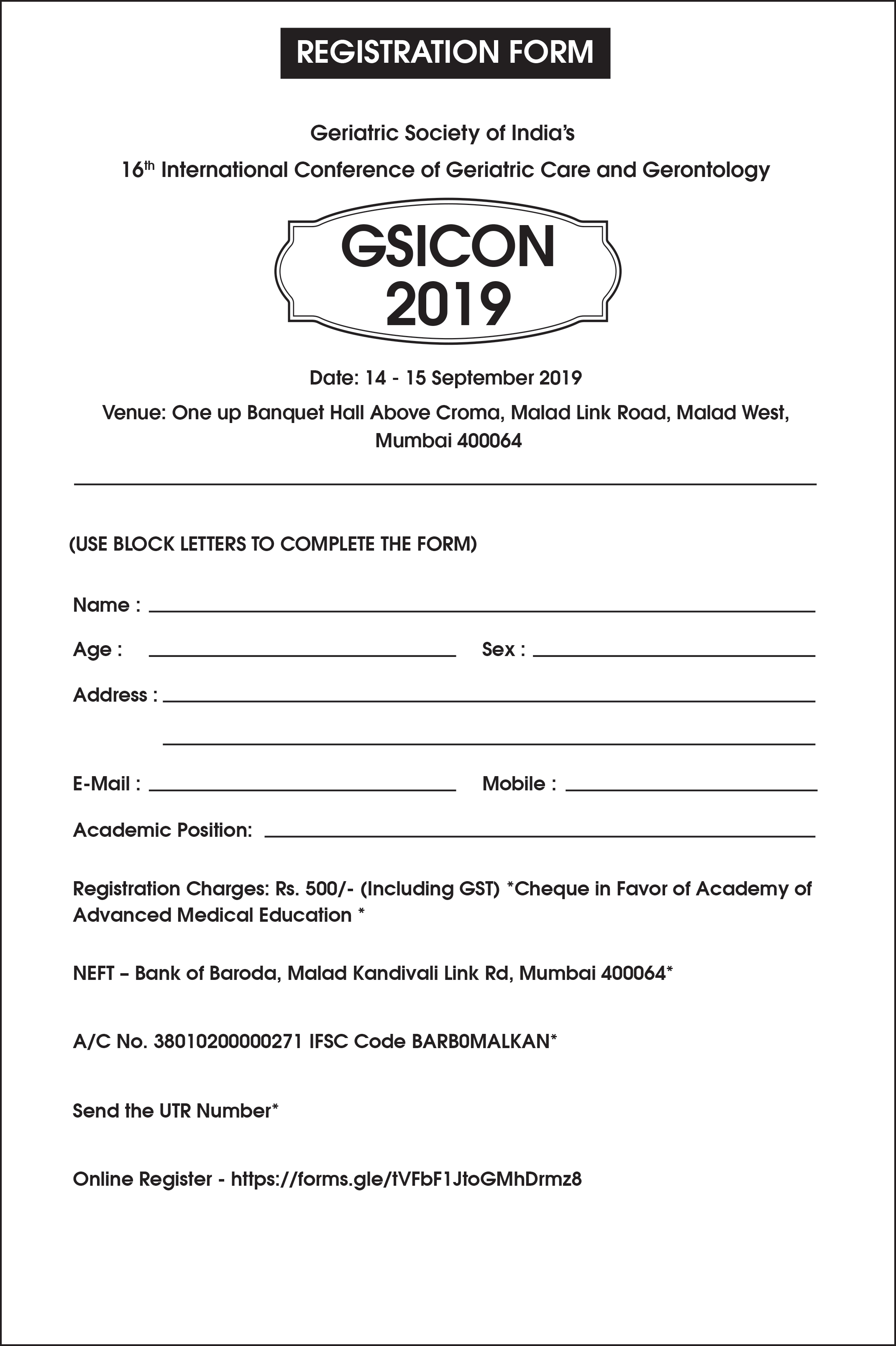 | 16th International Conference of Geriatric Care and Gerontology - GSICON 2019 | September 14-15, 2019 / Mumbai | Brochure / Registartion Form / Message from GS / Schedule |